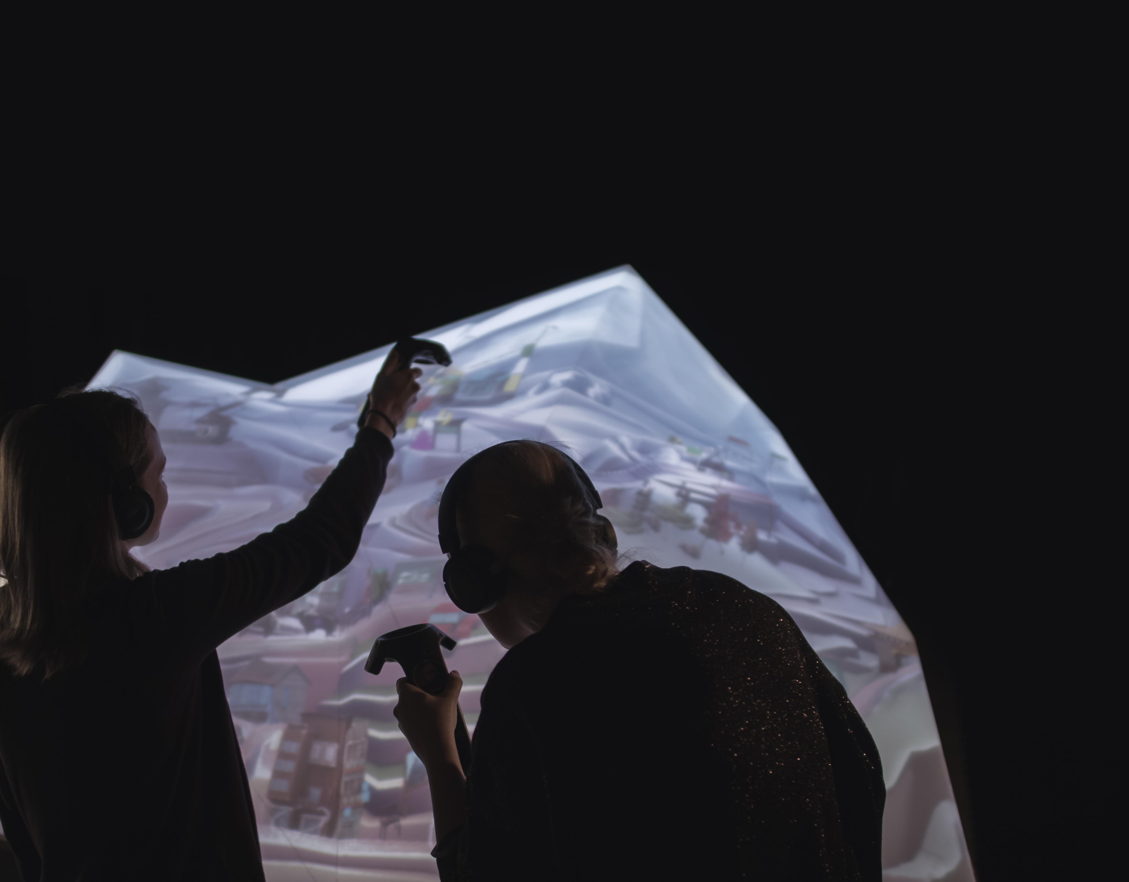To stimulate the feeling of a mountaineer and the awe of an enormous mountain we decided to build a big construction, on the surface of which we project the content of the game. To give the user as much freedom as possible to move in space and on the same time make the game easy to use, we choose the HTC Vive Technology. Because of the precise position tracking, we can guarantee an accurate 360 degree interaction with all mountain sides. Furthermore, the wireless interaction improves the immersion by far, while the use of projection eliminates the side effect of the user being isolated and creates a multiplayer experience instead.