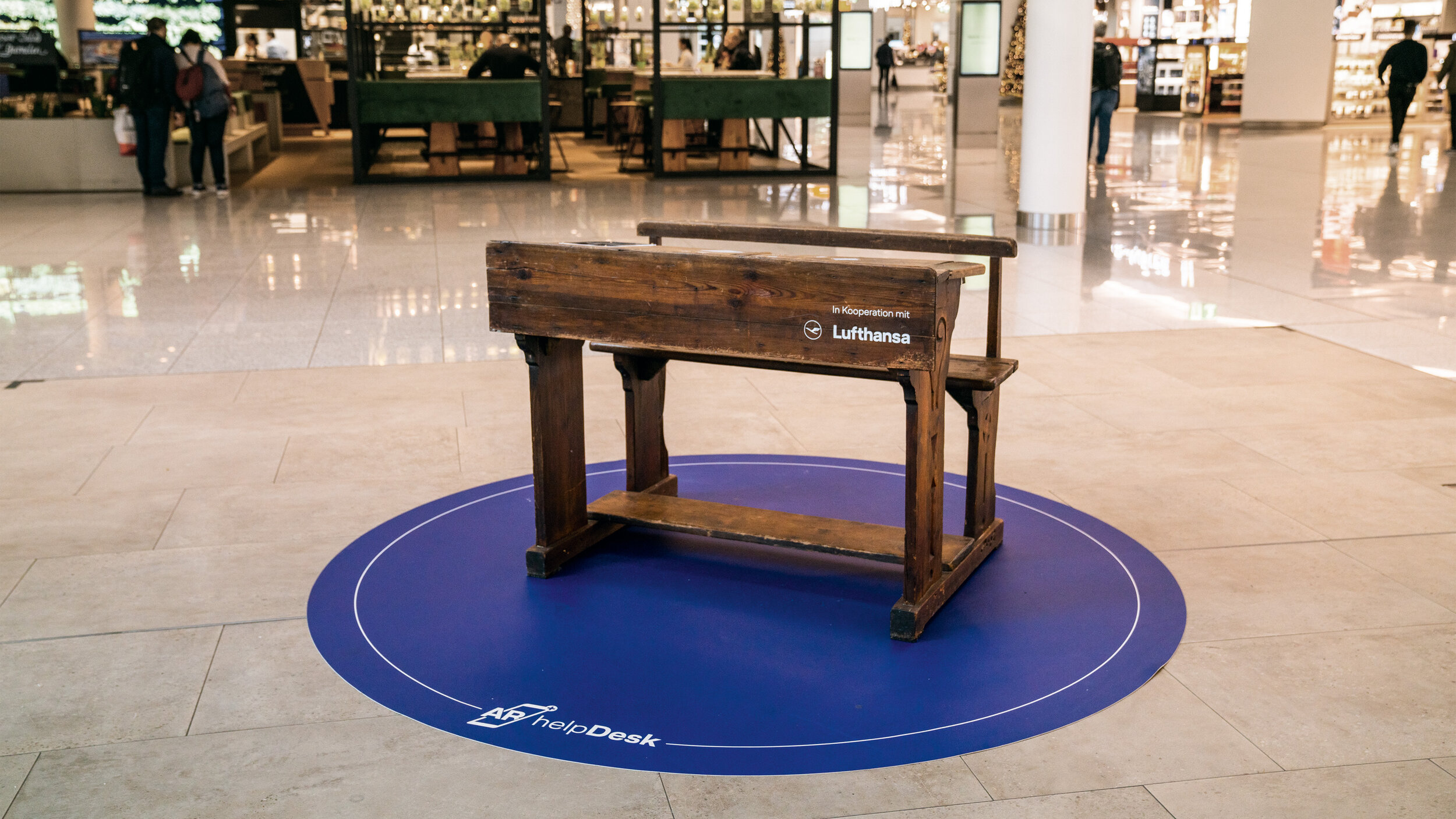 On a real school desk, virtual objects provide information to users about the funding programs. Through the AR experience, customers may shop for specific things and make a donation directly to support